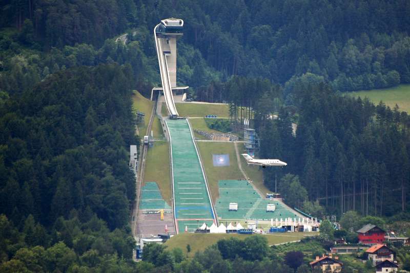 Den klassiske hoppbakken “Berg Isl” i Innsbruck. Sjekk flyet i forgrunnen!