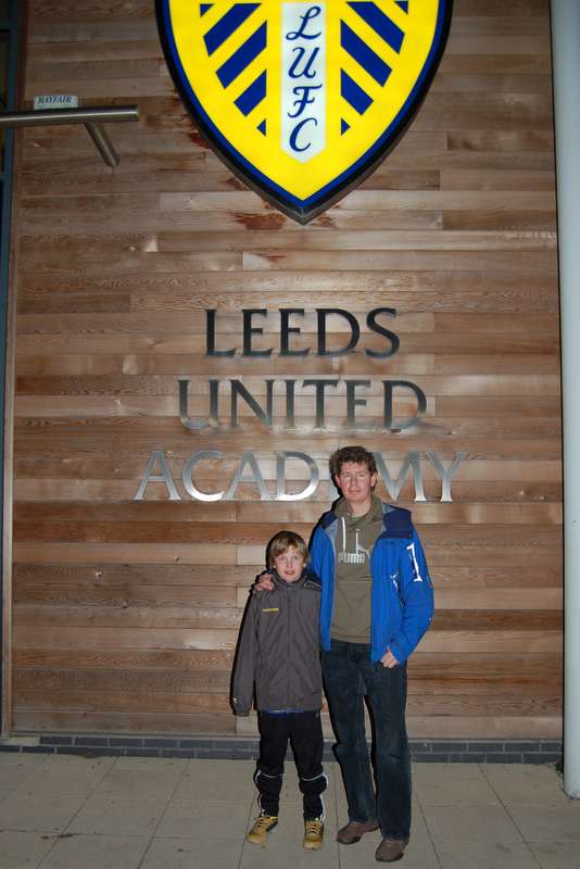Far og sønn foran Leeds United Academy