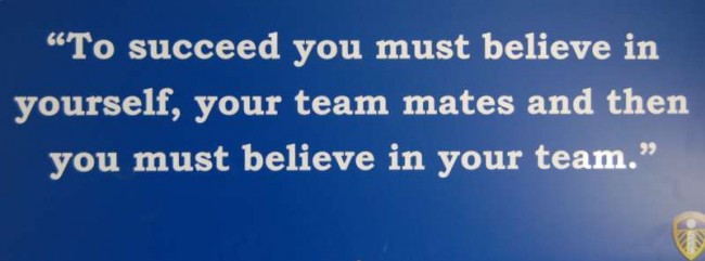 Dette store skiltet stod over døra inn til fotballhallen på Leedsakademiet. En klar oppskrift på hvordan en skal oppnå suksess!