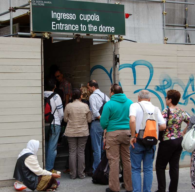 Ikke den mest eksotiske inngangen til kuppelen i Firenze. Men det skal sies at det var oppussing pågikk!